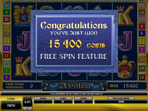 - 20 paylines - That's not as many as some other titles which have 25+ paylines or offer 243 (sometimes even more) ways to win, but the game doesn't suffer. Wins still feel fairly regular, and you're not left wishing Avalon had more paylines.
